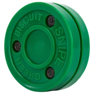 The Green Biscuit Snipe Training Hockey Puck is an off-ice training hockey puck that helps develop exceptional shooting skills. The Green Biscuit Snipe Puck weighs 5.2 oz in comparison to the original green biscuit weighing in at 4.6 oz. Therefore, the added weight provides a more realistic shot feel.